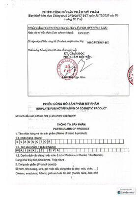 Kem dưỡng trắng da mặt- chống lão hóa WRINKLE EVA đã được các chuyên gia nghiên cứu và chứng minh phù hợp với mọi làn da, không gây kích ứng da.